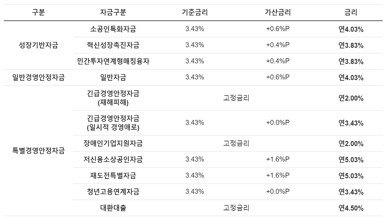 일반경영안정자금은 소상공인의 경영 안정을 돕기 위한 자금입니다. 최대 7천만 원까지 대출 가능하며, 금리는 연 4.03%입니다. 일반적인 소상공인이 자금을 조달할 때 가장 많이 이용하는 자금 유형입니다.